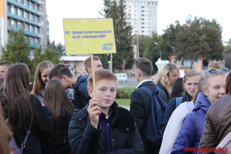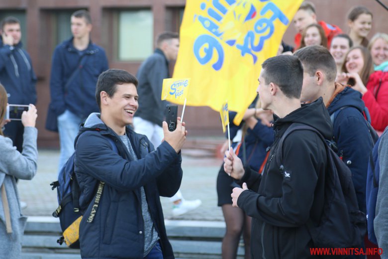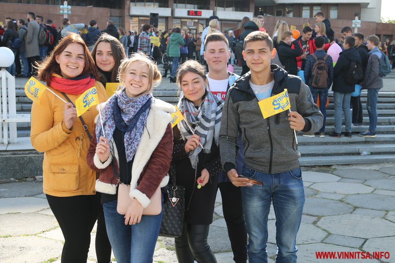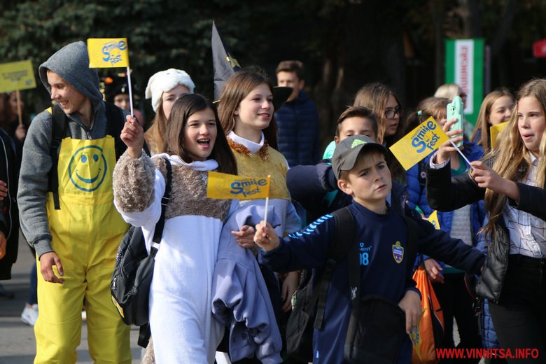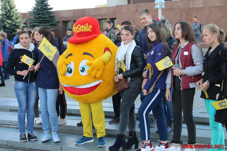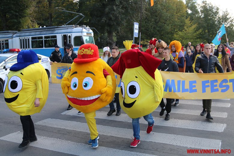 5 жовтня Вінниця святкує День народження смайлика. У місті сьогодні влаштували традиційну карнавальну ходу. Площа перед «Книжкою» зібрала близько тисячі учасників. В руках – жовті прапорці та кольорові кульки.