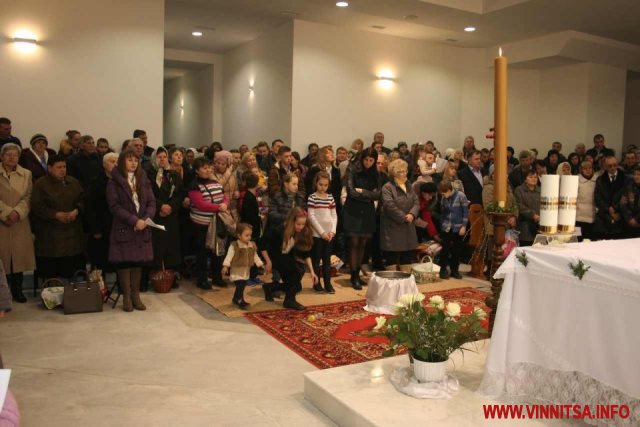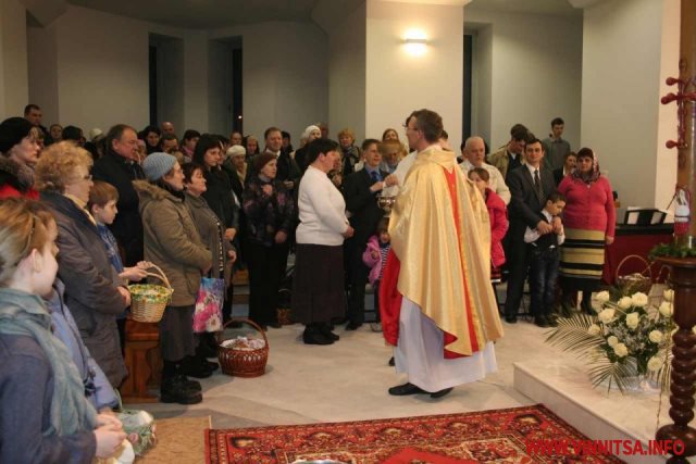 Частина вінницьких католиків – ті, що мешкають у мікрорайоні Вишенька – мали цього дня ще один привід для радості, адже нинішня Пасхальна літургія стала для них першою месою в новому просторому храмі, який незабаром замінить тісну парафіяльну капличку.