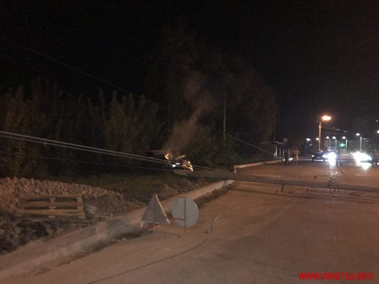 В ніч на 19 серпня у соцмережах виклали фото та відео, на яких неподалік Аграрного університету у Вінниці сталася ДТП. Легковик збив електроопору, яка впала на дорогу та перекрила її.