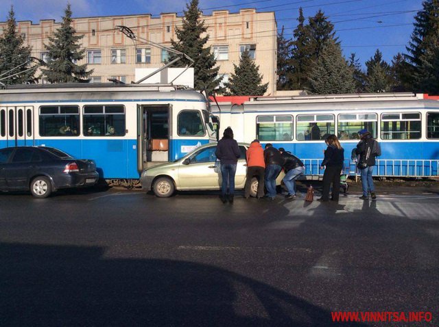 25 лютого зранку у Вінниці біля лікарні ім.. М. Пирогова водійка автомобіля «Лада Калина» припаркувалась на трамвайній колії і заблокувала рух електротранспорту в напрямку центру міста.