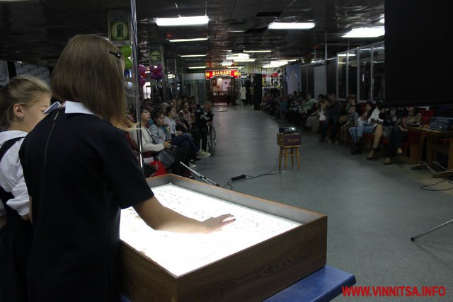Також в Універмазі було цікаве та захоплююче пісочне шоу «Місяць по небу ходить», яке презентували двоє дівчат з міста Хмельницького. А після виступу всі охочі могли взяти участь у майстер-класі з пісочної анімації. На гостей також очікував показ колекції яскравих образів "Я та Україна" від дизайнера Катерини Подрєзової .