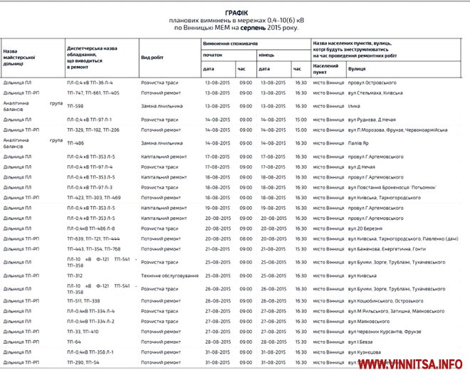 Коли і де у Вінниці не стане світла, дивіться на таблиці.