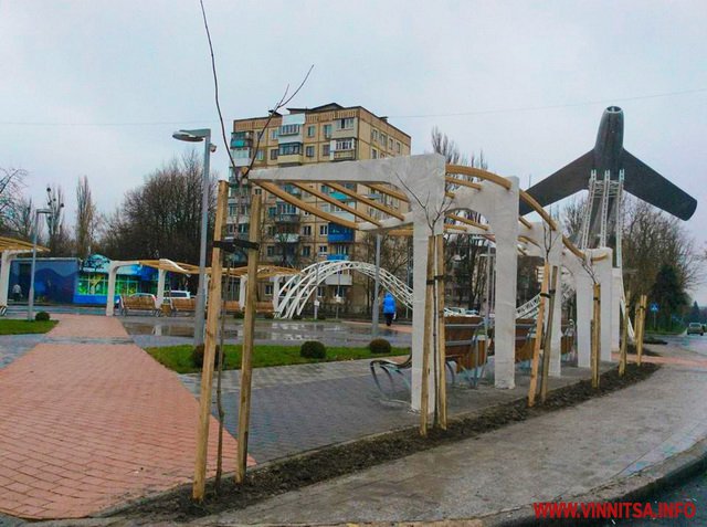 Станом на 1 грудня встановили літак на новий постамент, зробили «сухий» фонтан, поставили перголи, урни і лавочки, висадили дерева та провели озеленення. Навколо зони відпочинку нанесли розмітку під велодоріжку і паркувальні місця.