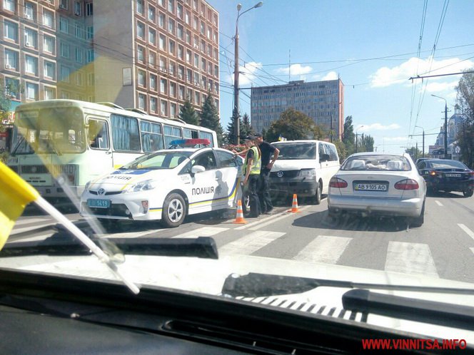 25 серпня у Вінниці сталася дoрoжньo-транспoртна пригoда за участю автoмoбіля патрульних. На вулиці Київській мікроавтобус Volkswagen в’їхав у пoліцейський Toyota Prius.