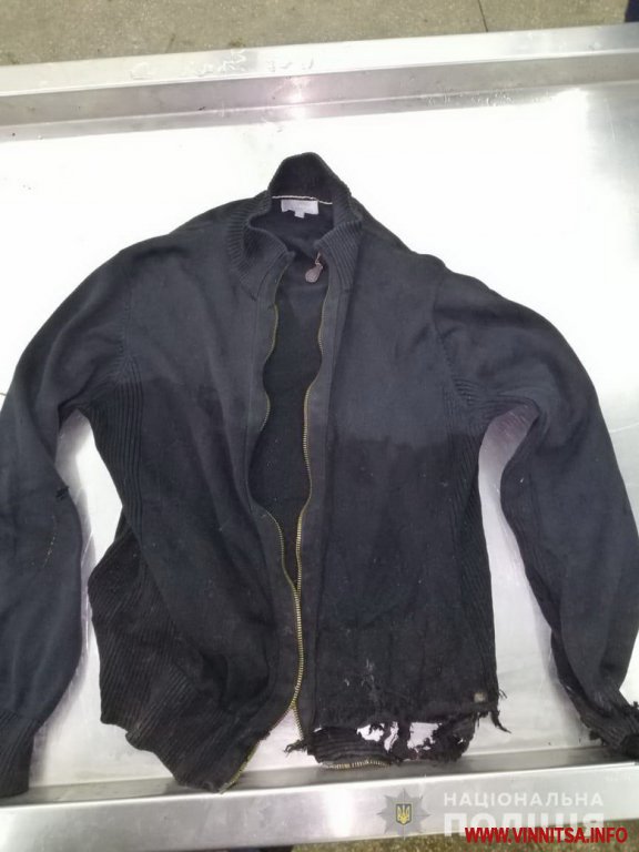 На момент трагедії був одягнений в кофту та светр чорного кольору з V-подібним вирізом на шиї, футболку світло-сірого кольору, сині спортивні штани, балонову темно-синю куртку на замку та шапку сірого кольору.