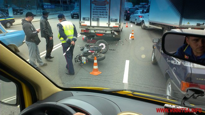 28 травня близько 10 ранку у Вінниці на вулиці Лебединського сталася ДТП. 18-річний водій мотоцикла не вибрав безпечної швидкості і зіткнувся в вантажівкою.