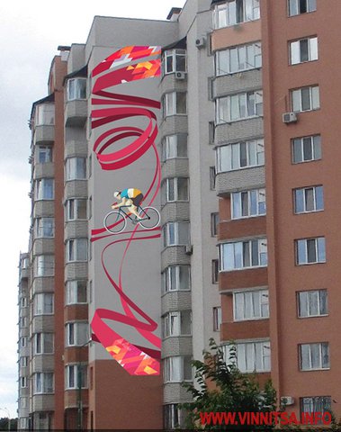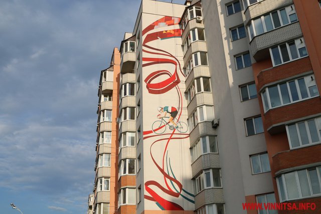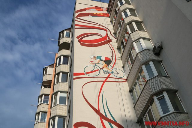У Вінниці завершили створювати останній мурал по вулиці Келецькій, 132а, «Місто спорту». На багатоповерхівці зобразили велосипедиста.