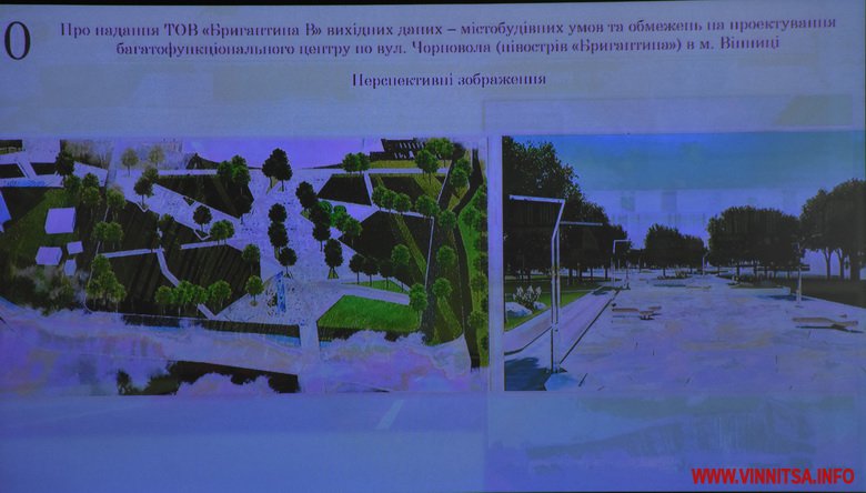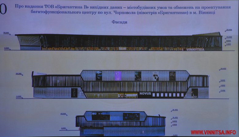8 листопада виконком Вінницької міської ради прийняв рішення про надання ТОВ «Бригантина В» вихідних даних – містобудівних умов та обмежень на проектування багатофункціонального центру по вул. Чорновола (півострів «Бригантина») в м. Вінниці.