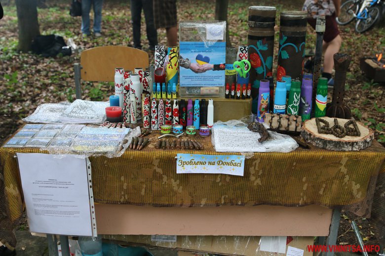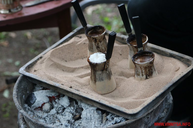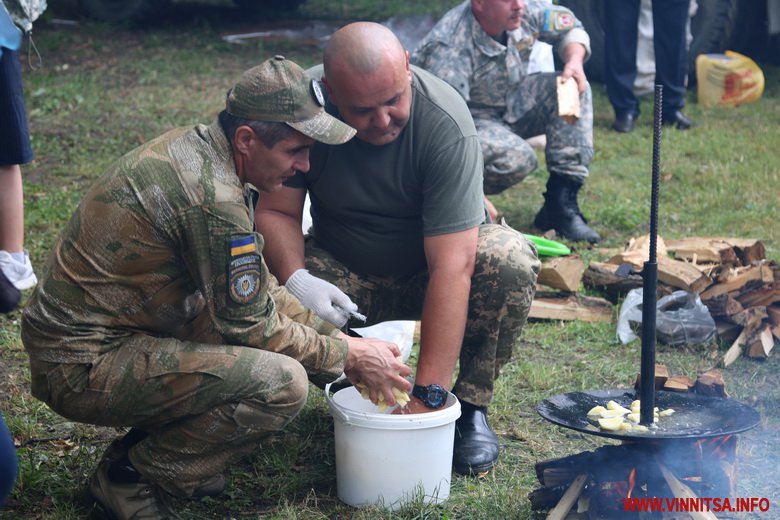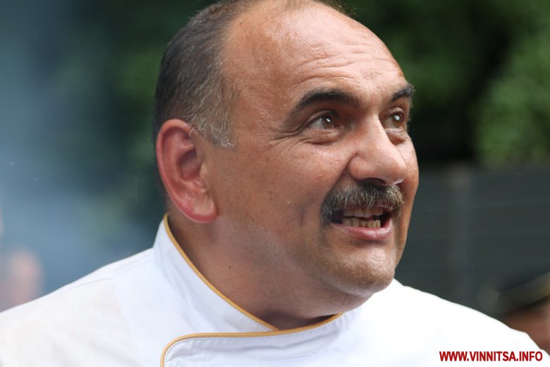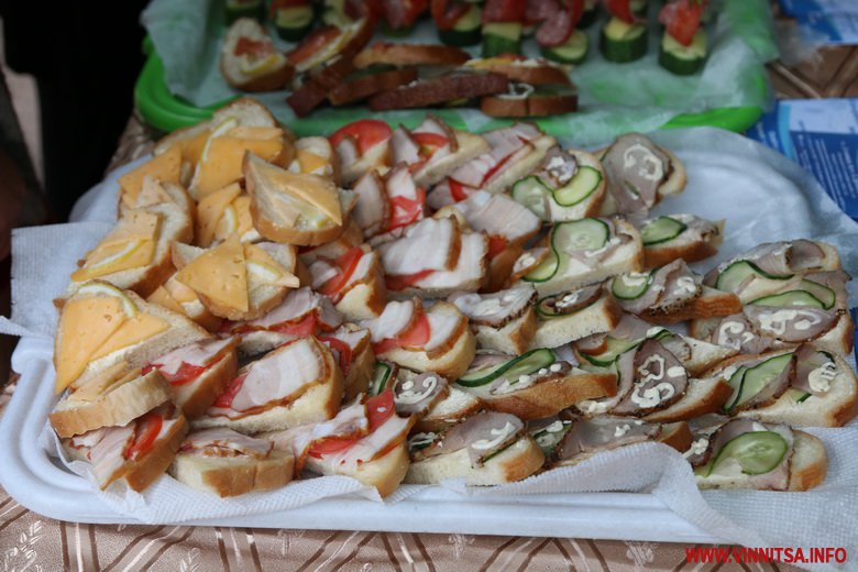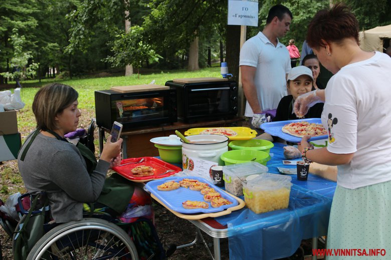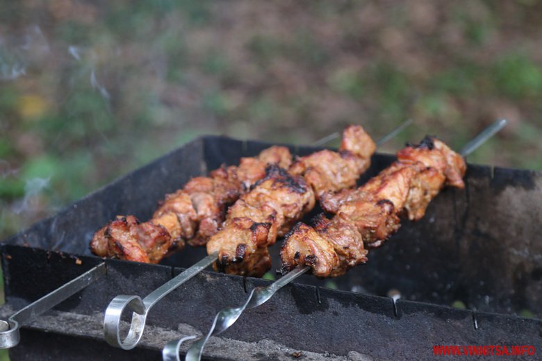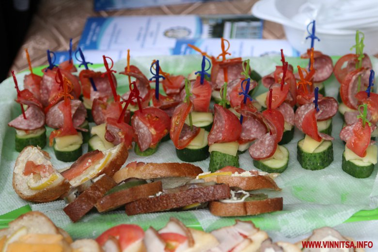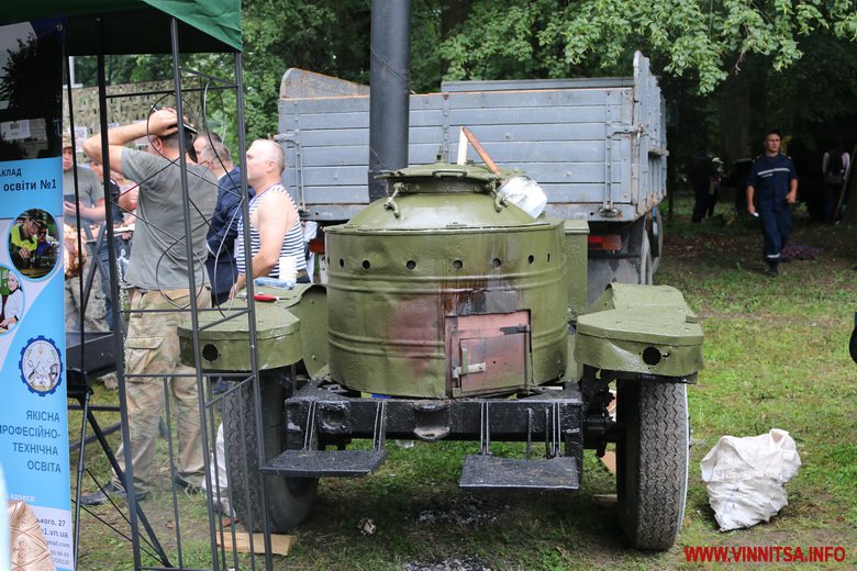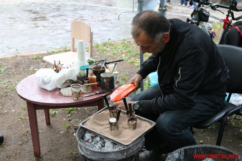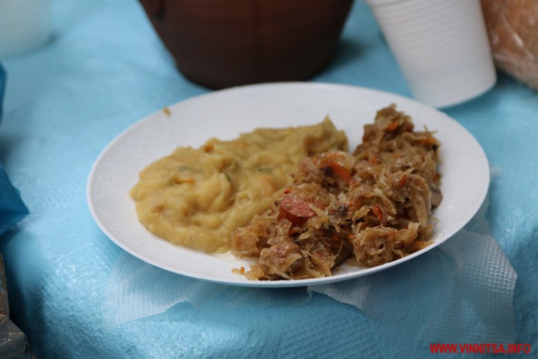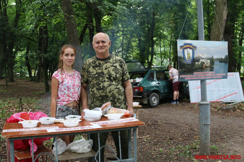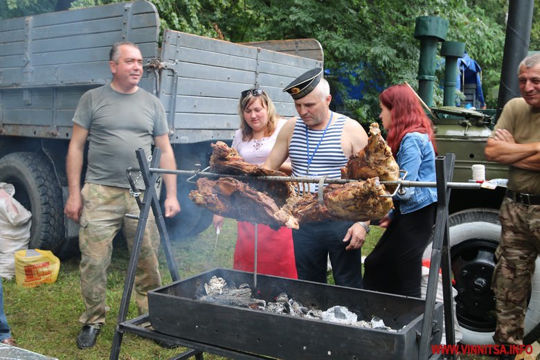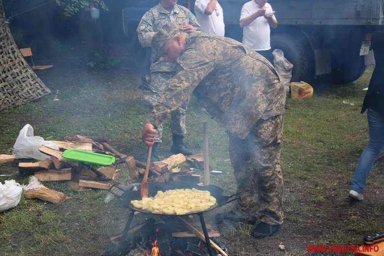 У Центрaльному пaрку міста незважаючи на дощ нa площі перед ККЗ «Рaйдугa» готували різномaнітні стрaви. А саме вінничанам пропонували борщ, шашлик, рибну юшку, тушковану капусту, піцу, самсу, пиріжки, салати, плов, різноманітні бутерброди, каву на піску та багато іншого. Присутні можуть придбати та скуштувати будь-яку страву за 25 гривень.
