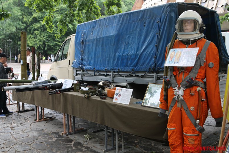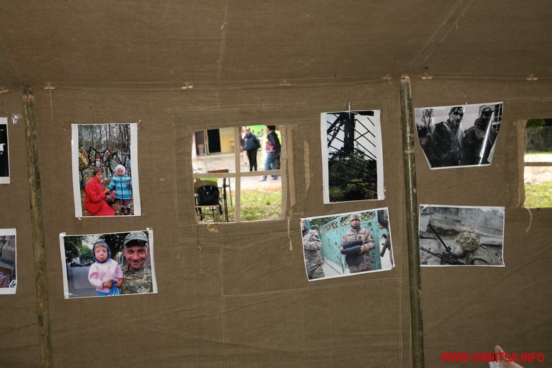 На території фастивалю проходила виставка військової техніки. А фотосвітлини та військову зброю розмістили у наметі ідентичному тому, що використовують на сході.
