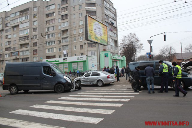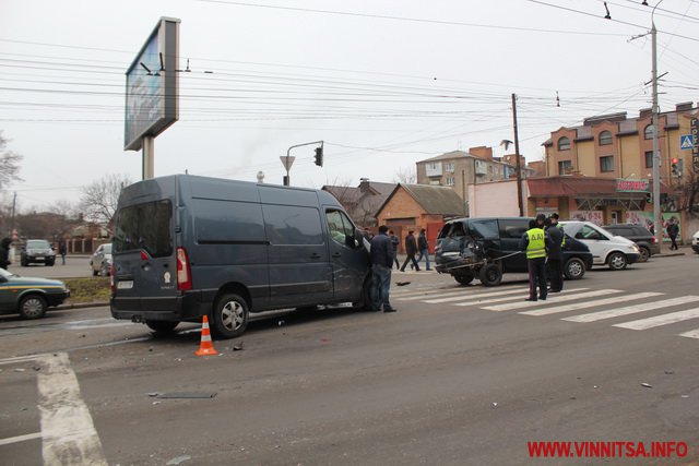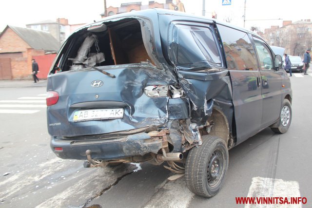 Як повідомили журналісту ВИННИЦА.info очевидці події, водій мікроавтобуса «Рено» великій швидкості, вїхав в «Ланос» і мікроавтобус «Хюндай», потім автівку «Хюндай» викинуло на зустрічну смугу і вона вдарила «Шкоду».