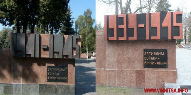 14 березня у Вінниці на Меморіалі Слави демонтували декілька цифр, які утворювали напис «1941-1945». Тепер на Меморіалі вказані нові роки «1939-1945».