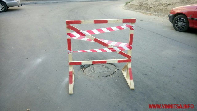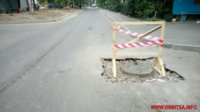 Комунальники поставили біля люку попереджувальний знак. Але ремонтні роботи поки що не розпочиналися.