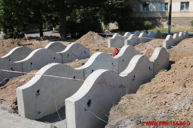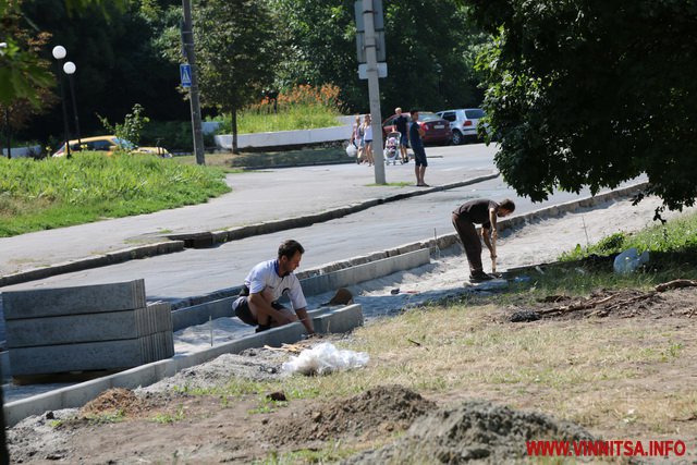 По середині алеї встановили бетонні плити у вигляді хвиль. Робітники розповідають, що ці конструкції будуть обкладати плиткою чи мозаїкою. Вони не тільки будуть мати гарний естетичний вигляд, а й встановлені, як продовження пішохідного переходу.