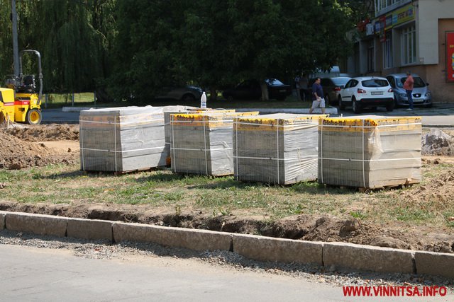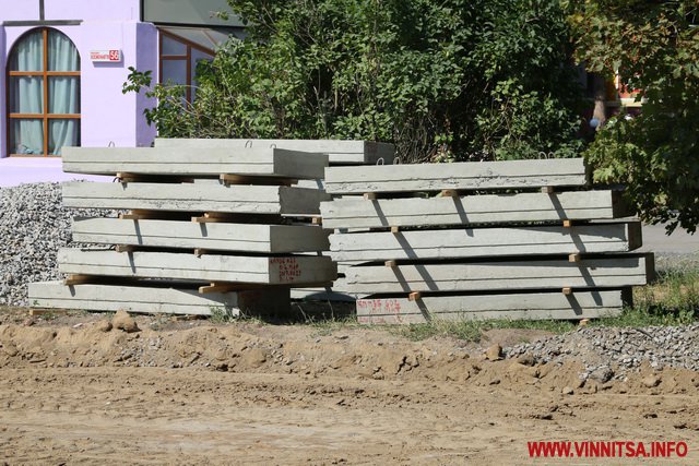На будівельний майданчик, що на проспекті привезли плити, якими вимощуватимуть пішохідну зону та ще партію бетонних «хвиль».