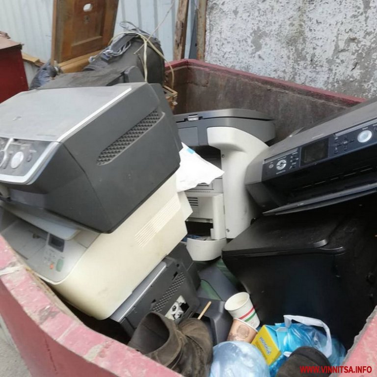 4 вересня після 10 ранку на одному з смітників у Вінниці перехожі помітили цілий склад оргтехніки. У контейнерах знаходилися понад десяток кольорових струйних та лазерних принтерів. В комунальному підприємстві, яке займається збором та переробкою відходів зазначають, що такі відходи є небезпечними і утилізувати їх необхідно окремо.