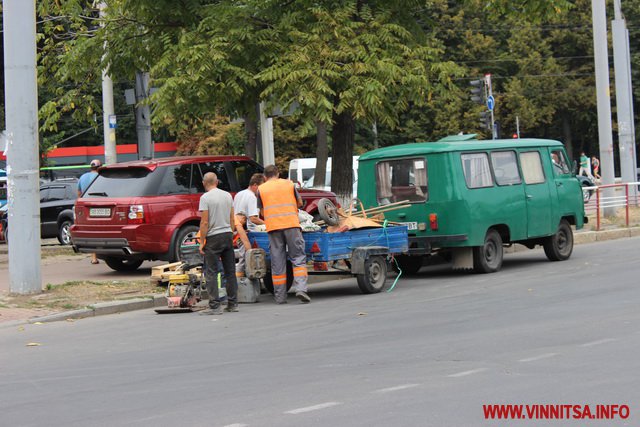 Руху автомобілів це не заважало, а от пішоходам прийшлося обходити працівників, які в цей час займалися звичною роботою.