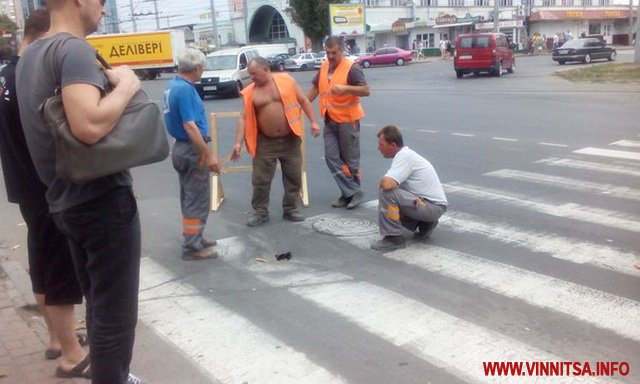 15 серпня в ближче до обід у Вінниці біля ринку «Урожай» на пішохідному переході утворилася в асфальті яма.