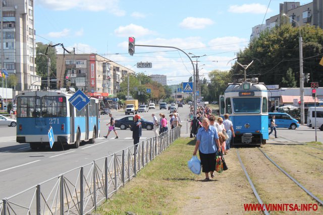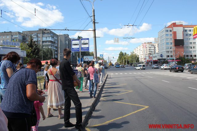 На вулиці Келецькій близько 12-ї години у довжелезну чергу вистроїлися кілька десятків тролейбусів та трамваїв.