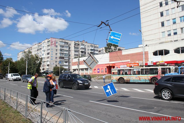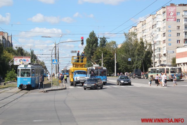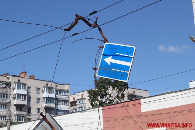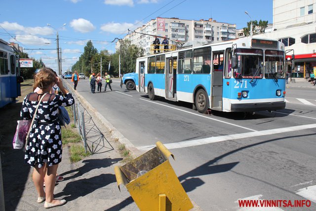 Як стало відомо кореспондентам Вінниця.info, на Юності на контактну мережу впав важкий поперечний трос, який служить для з'єднання мереж на перехресті, та зупинив постачання струму по лінії руху тролейбусів.