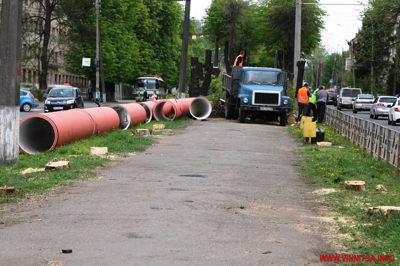 Кілька днів тому у Вінниці стартувала реконструкція вулиці Замостянської. В понеділок там почали заміну зливової каналізації. Сьогодні, 26 квітня, вирізали кілька десятків дерев.