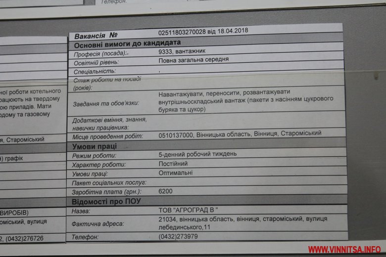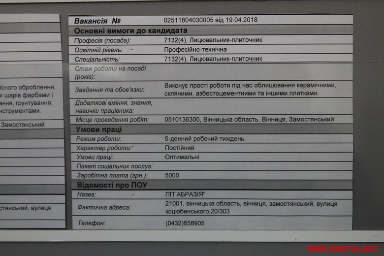 23 квітня Вінницька обласна служба зайнятості провела ярмарок вакансій. На першому поверсі кінотеатру Коцюбинського понад 80 провідних підприємств міста та області представили близько 550 вакансій.