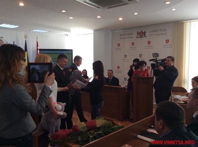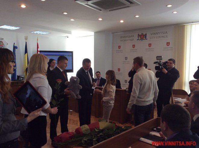 29 січня у Вінниці вручили подарунки діткам, які народилися під час новорічних і різдвяних свят. На сесії міської ради презенти вручили батькам немовлят. Забирали коляски й іграшки переважно татусі.