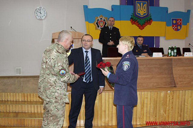 Державну нагороду бійцю вручили голова Вінницької облдержадміністрації Валерій Коровій та т.в.о. начальника ГУНП у Вінницькій області Юрій Педос.