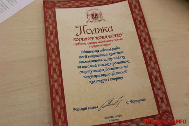 6 лютого у Вінниці в міській раді нагородили спортсменів, які здобули «срібло» на чемпіонаті Європи у Туреччині з індорхокею. 12 наших спортсменів зіграли в 5 ігор в місті Аланії. Усім гравцям вручили грамоти міської ради. Вперше українці увійшли в топ-8 кращих команд Європи.