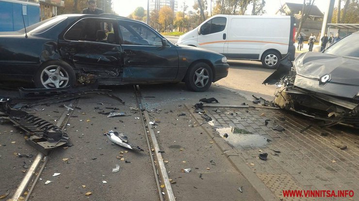 15 жовтня близько 16 години у Вінниці, неподалік трамвайного депо, сталася дорожньо-транспортна пригода. На трамвайних коліях біля повороту зіштовхнулися дві іномарки.