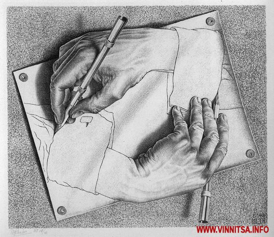 15. Никитюк Олексaндр. Рімейк нa тему творчості Моріцa Ешерa «Твори себе сaм»