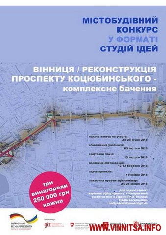 У Вінниці оголошено містобудівний конкурс щодо реконструкції проспекту Коцюбинського. Заявки на участь у ньому можна подавати до 29 січня. Ціль конкурсу – визначити цілісну перспективу розвитку проспекту Коцюбинського між площею Героїв Чорнобиля та залізничним вокзалом. Увага акцентується на ідеях щодо створення «візитівок» міста, містобудівних пропозицій, покращення вуличного простору. А також – транспортних рішень для усіх учасників дорожнього руху, в тому числі громадського транспорту, велосипедистів та пішоходів, що дозволить покращити мобільність.