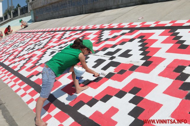 1 липня у Вінниці на набережній «Рошен» поновлюють та домальовують зображення вишивки.