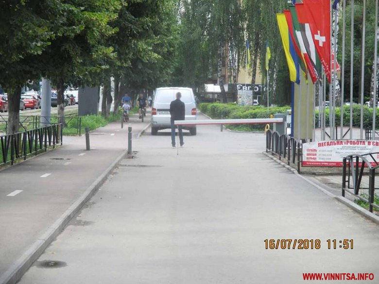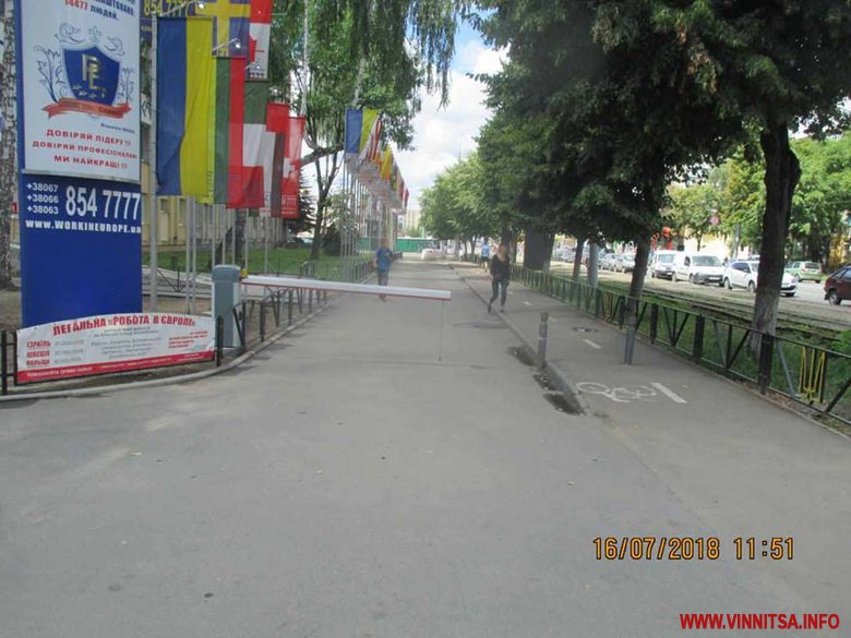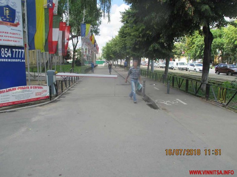 16 липня працівниками Муніципальної поліції в ході розгляду звернення громадян на «Гарячу урядову лінію» було зафіксовано, що компанією ТОВ «Келецька - сервіс» на пішохідній доріжці по вул. Келецькій встановлено шлагбаум, що перешкоджає вільному руху пішоходів, що видно на фото. Самовільне встановлення різноманітних обмежувачів руху, які потім перехожим доводиться оминати, адже вони заважають, є порушенням не лише Правил благоустрою території міста Вінниці, а й прав вінничан безперешкодно рухатися призначеною для цього територією.