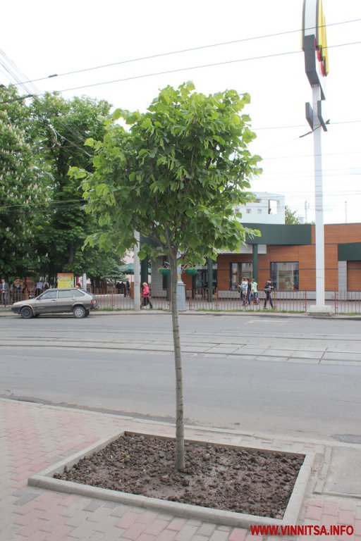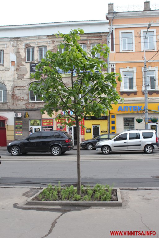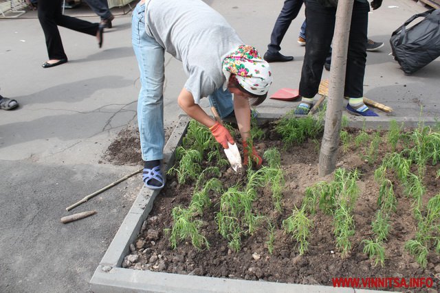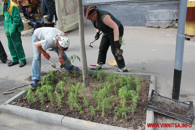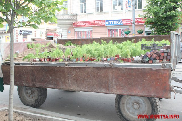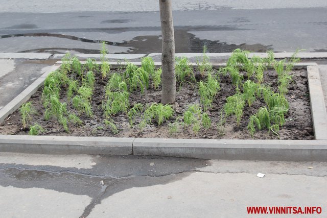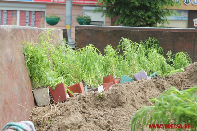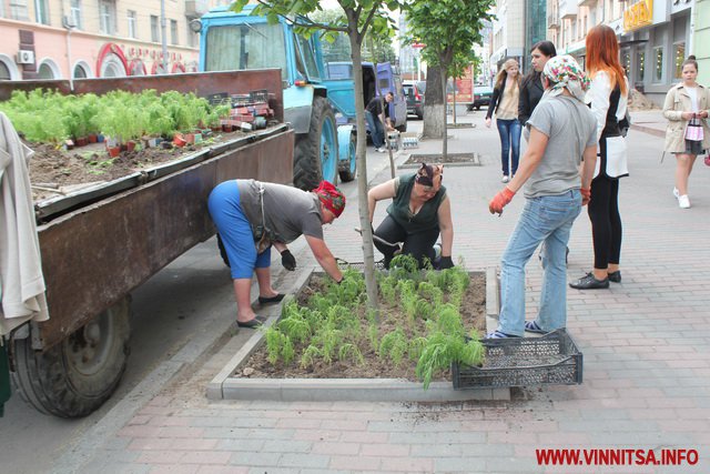 У Вінниці центральну вулицю міста почали озеленювати. «Зеленбудівці» висаджують на Соборній навколо декоративних дерев однорічну рослину – кохію.