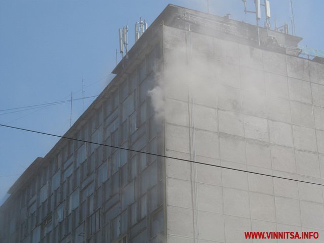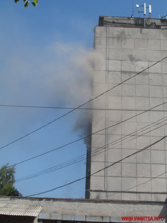 9 серпня у Вінниці сталася масштабна пожежа. Близько 14 години полум’я виникло на верхніх поверхах будинку побуту «Ювілейний» по вулиці 50-річчя Перемоги. Над будівлею здійнявся густий чорний дим. На місце події прибули одразу кілька автівок пожежників.