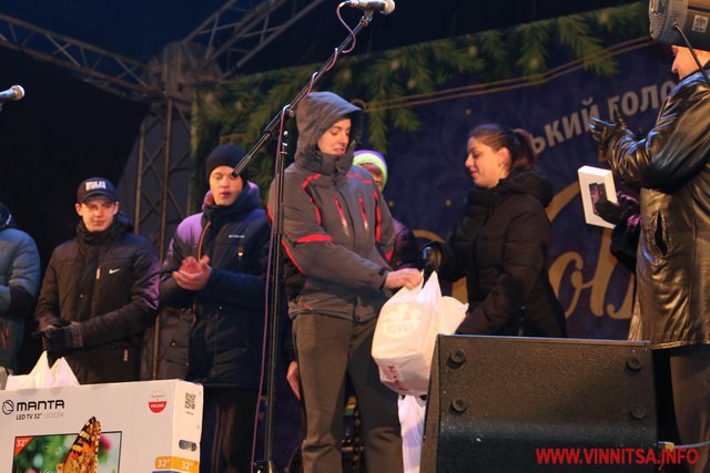 Щоб отримати омріяний приз від Діда Мороза, вінничани подолали чимало випробувань: кидали баскетбольного м’яча у кільце, збирали кульки, стрибали на скакалці, піднімали гирю і гантелю. Всі завдання виконували на швидкість. Врешті, переможцем у своїй віковій категорії став найспритніший і найшвидший конкурсант.