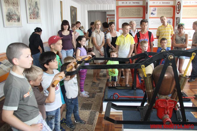 Дорослі та діти з цікавістю споглядали на експонати, які представлені у чотирьох залах експозиції в Головному управлінні ДСНС. Тут дітлахи змогли дізнатись про історію створення перших пожежних дружин, побачити зразки техніки минулих років.