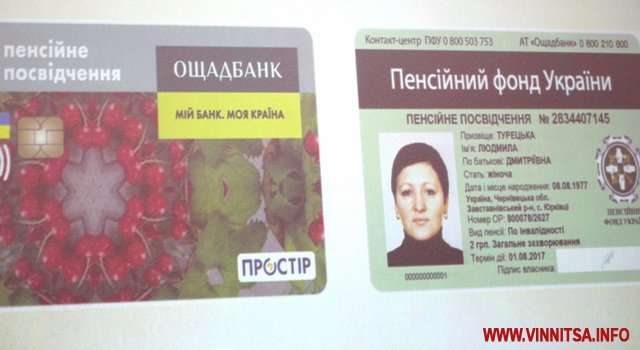 Пенсійний фонд разом із вінницьким відділенням Ощадбанку пропонує переселенцям зі сходу отримати пластикові пенсійні посвідчення, які одночасно будуть слугувати, як картки нарахувань соціальних виплат та пенсій. Про це повідомила начальник головного управління Пенсійного фонду України у Вінницькій області Олена Корчака.