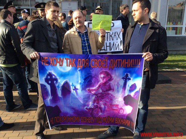 Вранці 8 квітня у Вінниці жителі мікрорайонів «Академічний» та «Сабарів» вийшли пікетувати міськраду. Люди протестують проти створення кладовища на приєднаній території і принесли на площу перед мерією надгробні хрести і погребальні вінки.