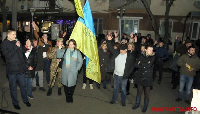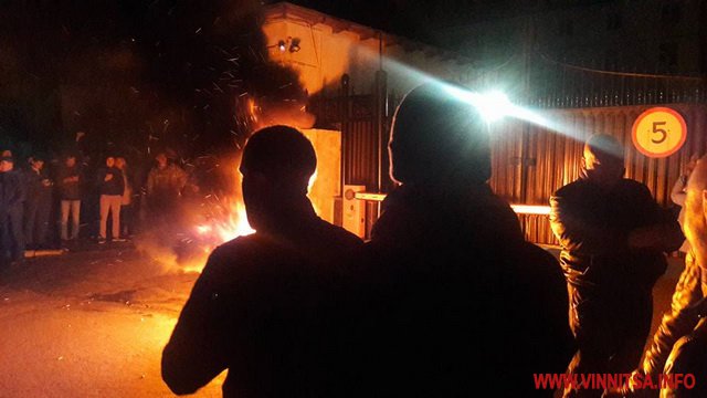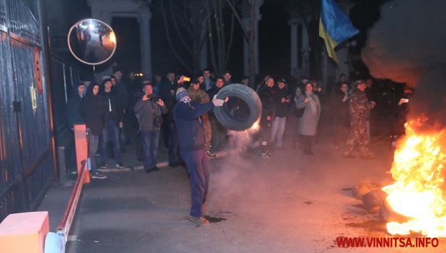 13 березня з 21 год. у Вінниці під приміщенням УСБУ зібралися пікетувальники. Ближче до опівночі їх було до двох сотень. Кажуть, вийшли на знак підтримки 43 блокадників, яких затримали у східній частині України. Вінницькі активісти запалили під стінами управління шини.