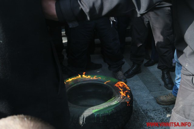 Після блокування Театральної натовп приніс під вхід в управління шини і запалив їх, поливши горючою речовиною.