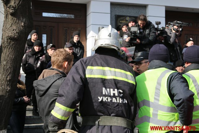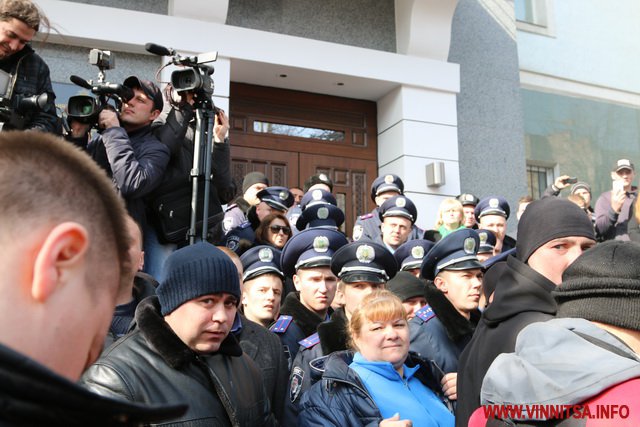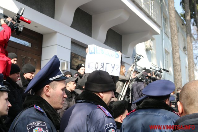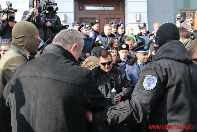 10 березня у Вінниці тривають сутички під управлінням Національної поліції області. Місцеві активісти та автомайданівці вимагають відсторонення від посади Антона Шевцова та його заступника.