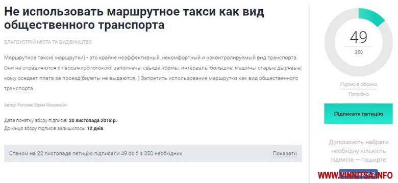 На сайті петиції до Вінницької міської ради зареєстрували звернення, в якому просять заборонити маршрутні таксі.