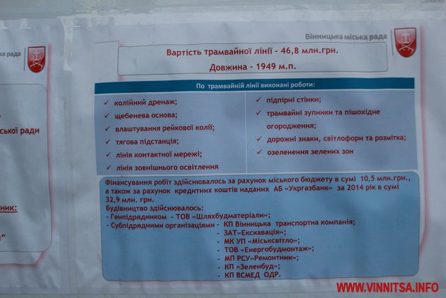 «Об’єкт було розпочато в 2008 році, але всі пам’ятають той кризовий період, тому підготовчі роботи проходили повільніше. З 2012 року ми більш інтенсивно зайнялись будівництвом, і вже на кінець 2014 року для вінничан відкрили нову транспортну артерію. 80, 2 млн. гривень обійшовся весь проект, з них 46 млн. гривень витратили на облаштування колії», - розповів в.о. Вінницького міського голови Сергій Моргунов.