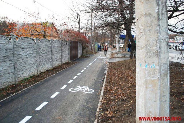 «Довжина велосипедної доріжки складає 840 метрів, ширина – 1,5 метри. Те, що вона відокремлена від проїжджої частини дозволяє підвищити безпеку її користувачів. Велодоріжка облаштована для спільного користування з пішоходами, а для зонування нанесена розмітка та облаштовано знак «4.14», згідно ПДД України. Така практика широко використовується в Європі», – зазначив керівник розвитку велосипедної інфраструктури м. Вінниці Олег Крупський.