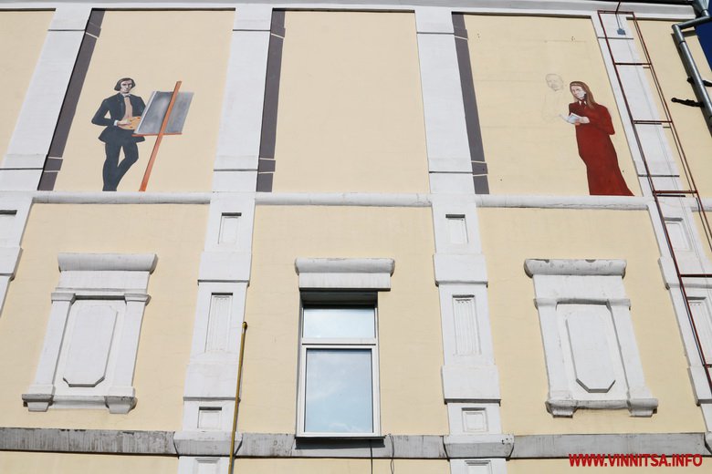 У Вінниці почали малювати перший в цьому році мурал. Після підготовчих робіт на будівлі по вулиці Соборна, 53 з’явилися фігури двох людей. Стінопис має назву «Вінницький модерн».