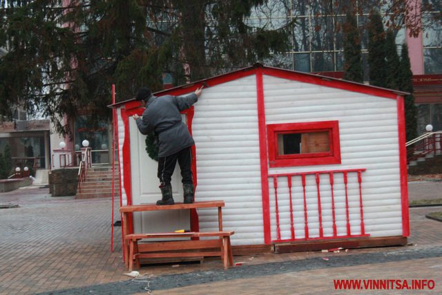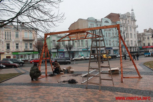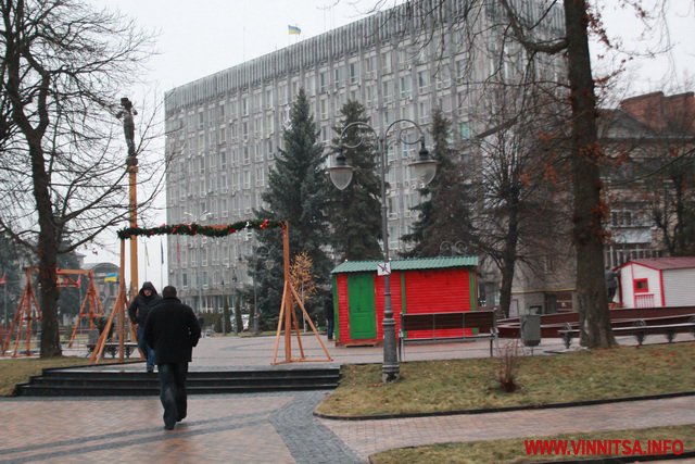 У Вінниці на Майдані Незалежності біля Вінницької міської ради почали монтаж новорічного містечка.