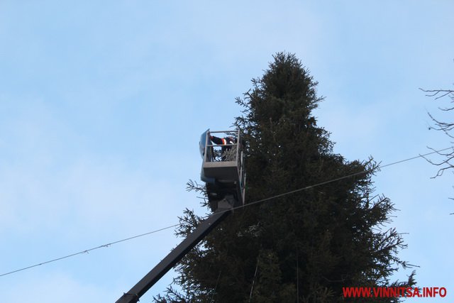 «Першим етапом стало зняття новорічних іграшок. Цим працівники парку займалися напередодні. Ми сьогодні знімаємо ілюмінацію. Працювали від 8 ранку. Зняли 200 гірлянд. Працювати неважко. І взагалі, працювати біля ялинки приємно. Бо гарно пхне хвоєю. Трішки шкода, що свята закінчилися. І тепер потрібно розбирати цю красу, яка радувала стільки людей. Вже без іграшок та ілюмінації ялинка простоїть до завтра. І її почнуть розбирати остаточно», - розповів електромонтер Вадим Кухрівський.