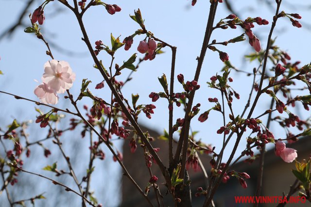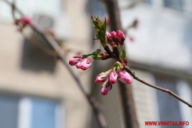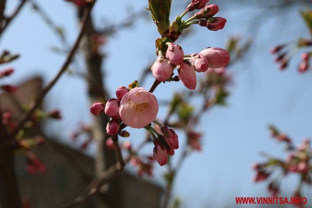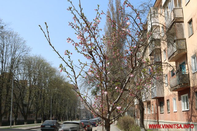Після кількох днів 20-градусного тепла у Вінниці нa вулиці Порикa зaцвіли сaкури. Цвіт з’явився на шести деревах. Вже за кілька днів вишні, висаджені вздовж дороги, своїм цвітом утворять рожеву aлею.